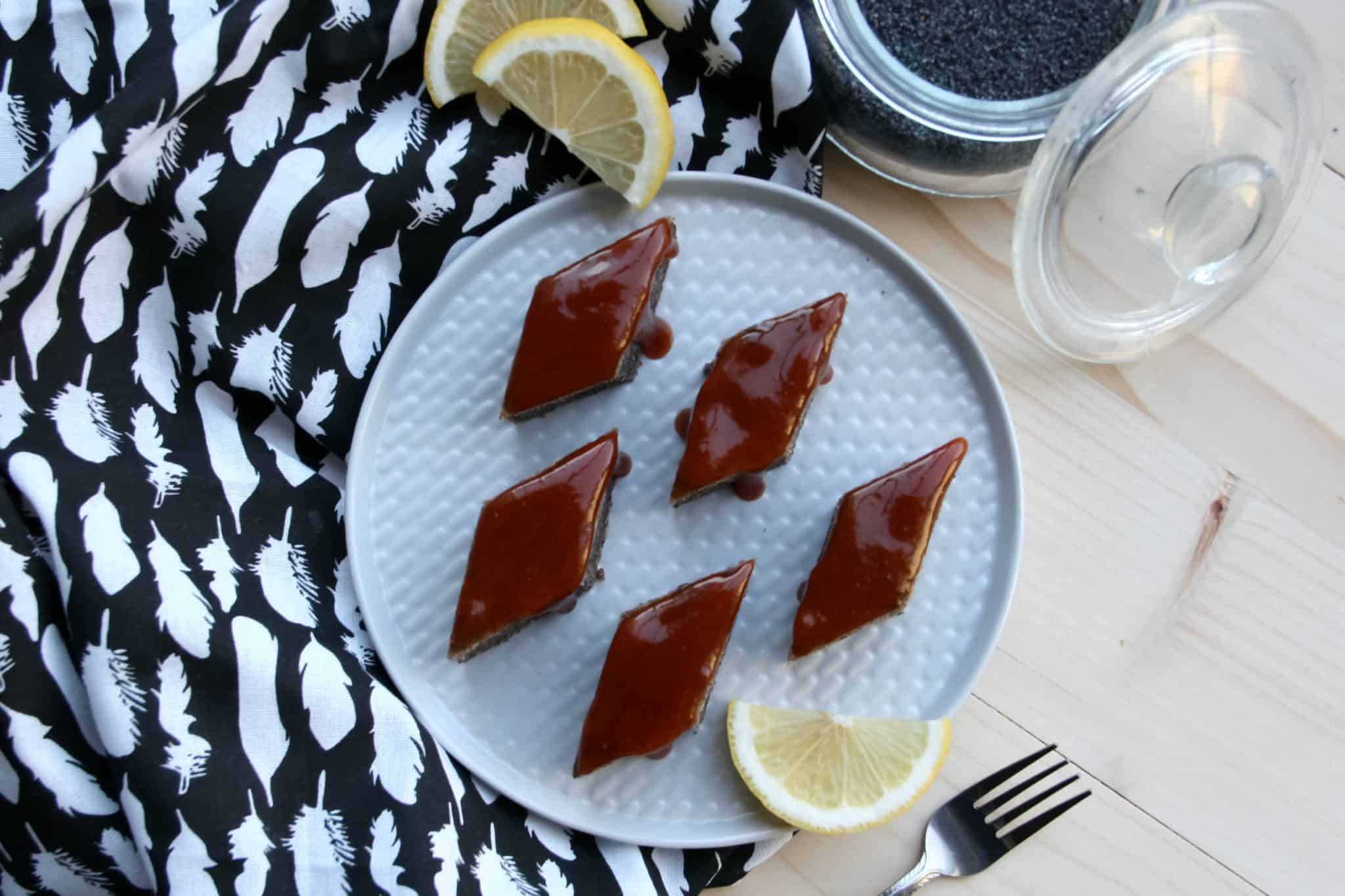6. Vychladnutý koláč potrieme šípkovým džem, ktorý si rozmiešame s citrónovou šťavou. Pridávajte jej toľko aby ste dosiahli redšiu konzistenciu, ktorá potom krajšie vyzerá na koláči. Ak vám citrón nerobí dobre, potrite koláč pokojne iba akýmkoľvek džemom ale ak máte radi mak, tak ako ja, bude vám chutiť aj samostatne bez ničoho.